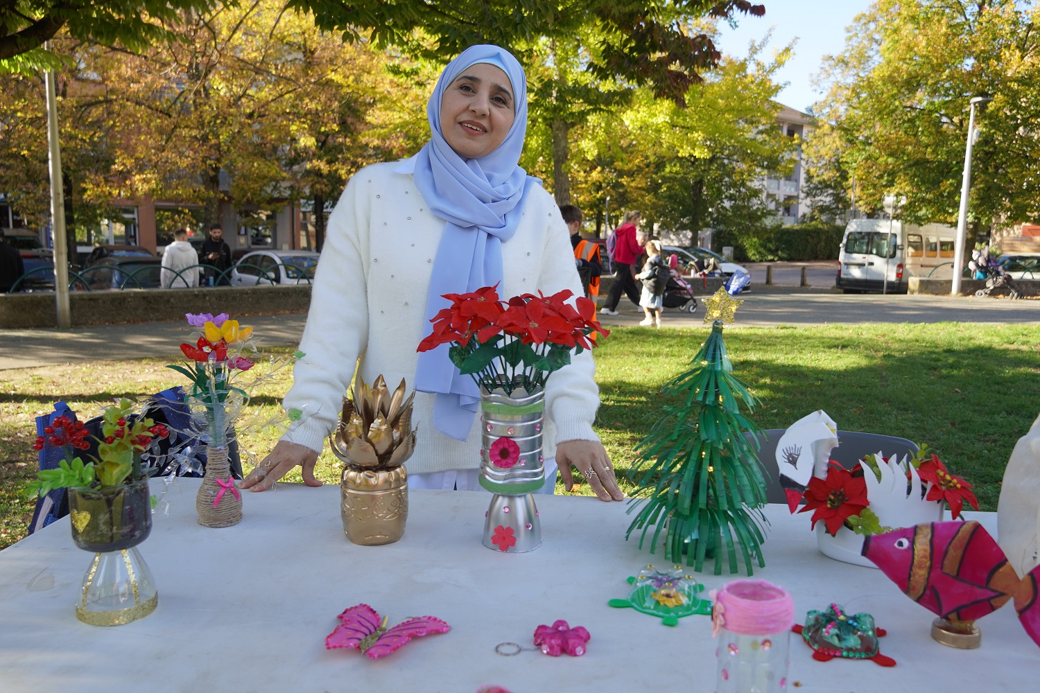 Le village du tri, installé devant la MDH, a permis de se questionner sur les déchets, et même leur réemploi grâce à la présence de bénévoles de la Papoterie (ancien Magasin pour rien) qui ont tenu un stand pour échanger avec les habitants et leur présenter ce magasin insolite basé sur le troc qui ouvrira prochainement ses portes place des Coulmes. Sans oublier la présence de Jalila, une habitante qui sublime les bouteilles en plastique pour en faire toutes sortes de créations. Des jeux et quiz étaient aussi proposés pour en savoir plus sur la thématique des déchets et leur recyclage.