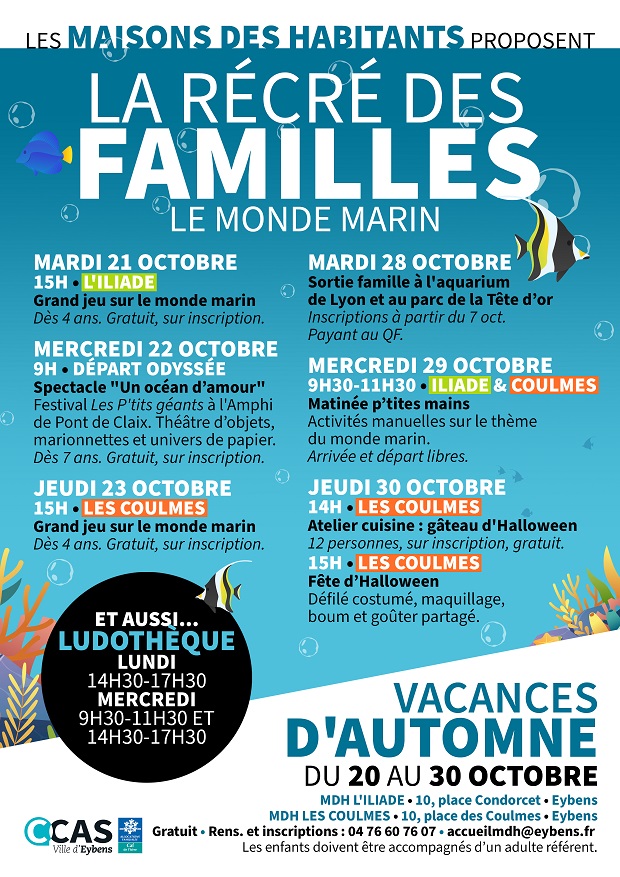 À noter : la matinée P’tites mains du 29/10 et la fête d'Halloween du 30/10 sont sans inscription.