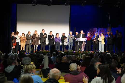 Puis de jeunes danseuses et musiciens du CRC, ainsi qu'un groupe de musique actuelle, ont fait une représentation aux convives avant le discours des voeux du Maire aux personnes présentes, entourés des élus Eybinois.