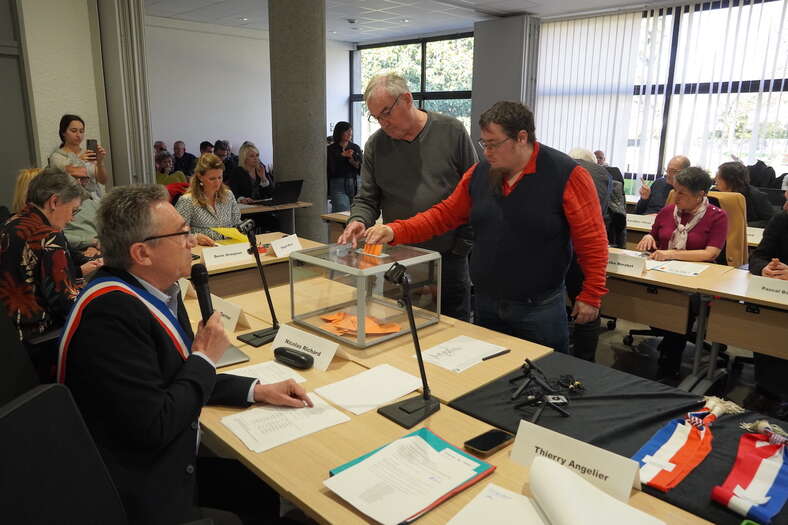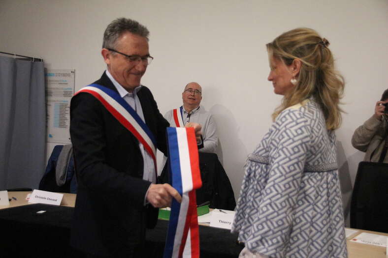 Comme le veut la loi, c'est le doyen d'âge, M. Vial, qui a présidé la séance avant l'élection du maire, qui s'est faite à bulletins secrets par les 33 élus du conseil municipal. Il lui a ensuite remis son écharpe de maire.