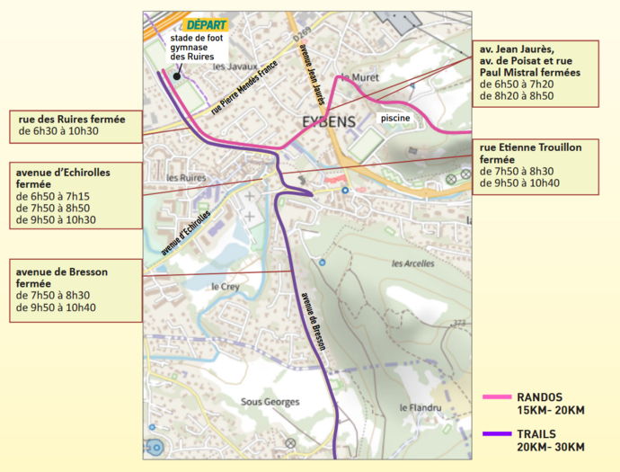 Cette course, devenue désormais une classique populaire qui réunit plusieurs milliers de participants, se fera au départ d’Eybens (Gymnase Roger Journet aux Ruires) pour les distances suivantes : 1 trail 30km (1000m d+) / 1 trail 20km (550m d+) à effectuer seul ou en relais à 2, des randonnées (10, 15 et 20km), ainsi que des épreuves pour les enfants.