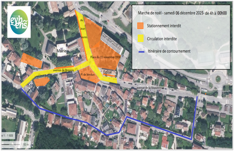 - Circulation piétonne interdite dans le parc de la mairie (zone balisée) : le samedi 6 décembre 2025 de 14h30 à 22h.
